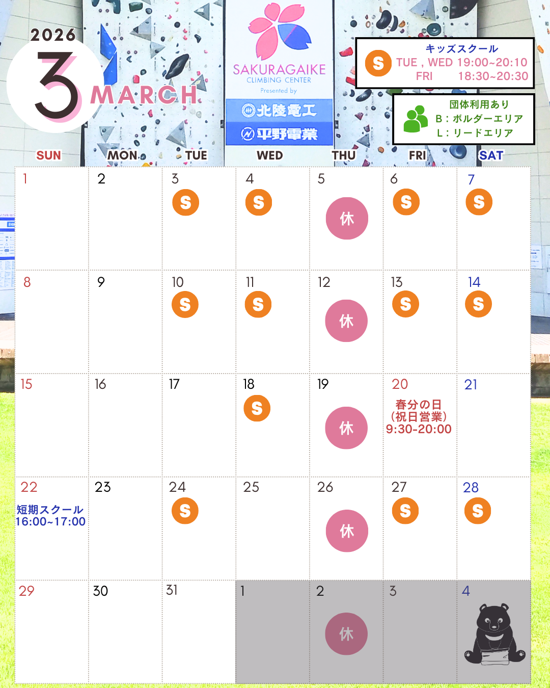 3月の営業予定です。
